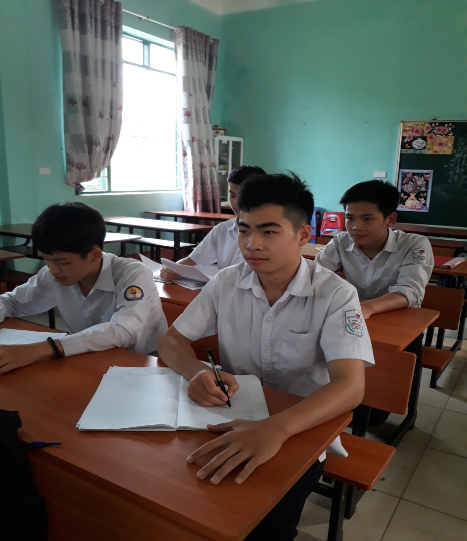 Em Đặng Tiến Cường (người đầu tiên, chính giữa) trong giờ học môn Vật lí. Vật lí là môn học tương đối khó, nhiều học sinh không hào hứng, nhưng đối với Cường đây lại là môn học thật sự hấp dẫn. Niềm đam mê, yêu thích môn học của Cường luôn nhận được sự động viên của gia đình, thầy cô, nhất là cô giáo Thái Thị Khương, giáo viên dạy môn Vật lí. Cô không những luôn động viên mà còn tạo mọi điều kiện và cơ hội cho Cường phát triển môn học. Dưới sự hướng dẫn chu đáo, tận tình, tỉ mỉ của cô Khương, Cường đã có một sự bứt phá lớn. Năm học 2017 - 2018, Cường chỉ đạt giải khuyến khích trong kì thi chọn học sinh giỏi lớp 8 môn Vật lí cấp thành phố. Nhưng đến năm học 2018 - 2019, Cường đã đạt giải Nhất cấp thành phố và giải Nhì cấp tỉnh trong kỳ thi chọn học sinh giỏi lớp 9 môn Vật lí.