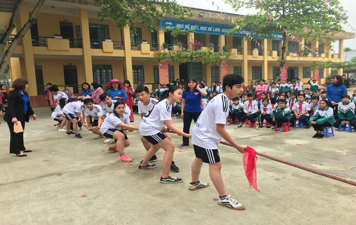 Cường (người đầu tiên từ phải qua) tham gia kéo co cùng các bạn. Tinh thần hiếu học và nghị lực của Cường thật đáng khâm phục. Chúc em sẽ thực hiện được những ước mơ, mong muốn của mình trong tương lai.