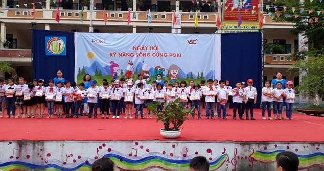 Trong ngày hội Kỹ năng sống cùng PoKi, trường TH Hoàng Văn Thụ trao 50 suất quà trị giá 2,5 triệu đồng cho các em học sinh trường TH Thị trấn Bắc Hà. Ngoài ra các em còn được học, giao lưu, ăn, nghỉ trưa cùng các bạn học sinh nhà trường.