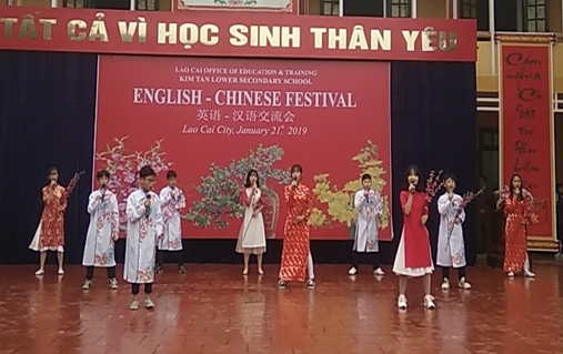 Với mục tiêu nâng cao hiệu quả dạy học ngoại ngữ, ngày 21/01/2019 trường THCS Kim Tân tổ chức “Ngày hội Tiếng Anh – Tiếng Trung Quốc” nhằm giúp học sinh được rèn kỹ năng sống, kỹ năng giao tiếp bằng Tiếng Anh – Tiếng Trung Quốc.