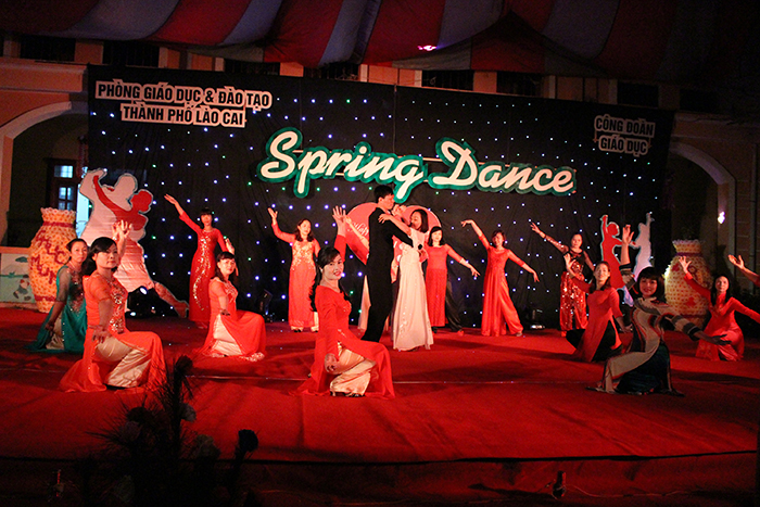 Tham gia chương trình gồm 13 đội đại diện cho cán bộ, giáo viên, nhân viên của 17 xã phường với hai nội dung: Dance và Game Show. Với nội dung “Bước nhảy mùa xuân” là phần trình diễn đẹp mắt và sôi động, điêu luyện của các đôi nhảy đã mang đến cho khán giả những giây phút ngọt ngào, êm dịu với điệu Valse của phường Duyên Hải hoặc sôi động với Vũ điệu hoang dã của phường Pom Hán hay Vũ khúc rực lửa của phường Cốc Lếu…