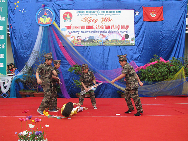 Ngay trong khi xây dựng Kế hoạch thực hiện nhiệm vụ năm học 2016-2017, nhà trường đã xác định: Tăng cường dạy và học tiếng Anh thông qua môn học và hoạt động giáo dục là nhiệm vụ tiên quyết để đổi mới giáo dục. Chính vì vậy ngay từ đầu năm học, mọi hoạt động giáo dục đều hướng tới việc học tập sáng tạo để hội nhập. Nhiều hoạt động đã được tổ chức với mục tiêu hướng tới 100% học sinh được tham gia, hoạt động, trải nghiệm, Ngày hội thiếu nhi vui khỏe, sáng tạo và hội nhập được tổ chức cũng không ngoài mục tiêu đó.