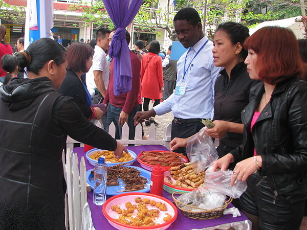 Tại phần Hội chợ thương mại tí hon, các em được sử dụng vốn kiến thức tiếng Anh đã học để giúp cha mẹ hoặc ông bà mua sắm những món hàng do chính tay các bạn HS trường mình tạo ra. Với sự bán hàng khéo léo của các nhân viên bán hàng là giáo viên bản địa của trung tâm Việt Mỹ và sự hỗ trợ của các giáo viên tiếng Anh tại các trường tiểu học trong thành phố, các mặt hàng đã được trao đổi mua bán thành công và đạt dược mục tiêu: Tạo môi trường giao tiếp hoàn toàn bằng tiếng Anh.