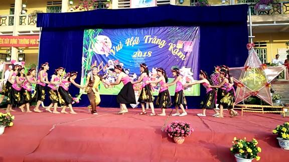 Mở đầu hội trăng rằm là tiết mục văn nghệ “Chú Cuội chơi trăng” do các em học sinh nhà trường biểu diễn.