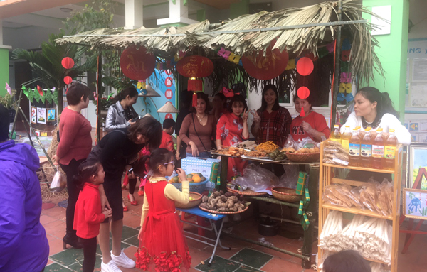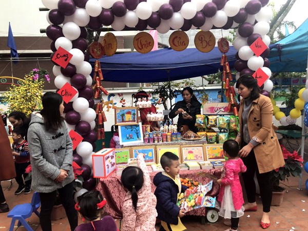 Đến với Hội chợ xuân, phụ huynh và các bé sẽ được hoà mình vào các gian hàng với rất nhiều mặt hàng đặc sắc. Không gian hội chợ được sắp xếp hài hoà, màu sắc rực rỡ làm nổi bật không khí ngày xuân. Đặc biệt khi đến với Hội chợ, chúng ta còn được chiêm ngưỡng các bức tranh do các hoạ sĩ nhí của nhà trường thể hiện.
