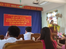 Cô Nguyễn Thị Huệ - HT trườngTH Nam Cường đọc diễn văn ôn lại truyền thống ngày nhà giáo VN