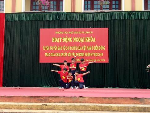 Đặc biệt trong năm học vừa qua nội dung tạo điểm nhấn trong mô hình trường học “ Du Lịch” với công trình “ Tôi yêu Việt Nam” của hội cha mẹ học sinh trong nhà trường kính tặng để luôn nhắc nhở mỗi học sinh hãy khác sâu lời Bác dạy “ Non Việt Nam có trở nên vẻ vang hay không, chính là nhờ một phần lớn vào công học tập của các cháu” ; Cái chân lý sống sang ngời ấy luôn sống mãi dưới mái trường THCS Ngô Văn Sở thân yêu. Ngày 14/ 2/ 2019 hoạt động ngoại khóa với chủ đề “ Biển đảo quê Hương – Chia sẻ yêu thương” với những bài ca tiếng hát về Đảo sa vang vọng sân trường gợi cho học sinh nhiều ký ức thân thương về đảo sa; Bên cạnh đó 31 xuất quà tết đã được trao tặng cho các thầy cô giáo và các em học sinh có những hoàn cảnh khó khăn mà vẫn vươn lên học tập và làm việc hoàn thành tốt mọi nhiệm vụ được giao