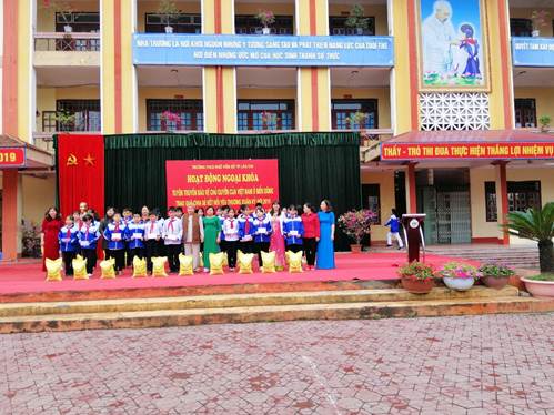 Đại diện ban quản lý đền Cấm trao quà cho học sinh nhà trường nhân dịp tết Nguyên Đán Xuân Kỷ Hợi 2019 Có được những thành quả đó là nhờ có sự lãnh chỉ đạo sát sao, tâm huyết, nhiệt tình tất cả vì học sinh thân yêu của ban lãnh đạo nhà trường cùng các thầy cô giáo đã luôn quan tâm, chăm lo tới học sinh.