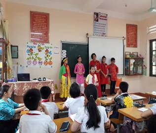 Những hoạt động trên lớp đầy tự tin của học sinh lớp 5A Tiết dạy được thiết kế phương án lên lớp như một Gala, mỗi nhóm đều làm việc tích cực từ khâu chuẩn bị cho đến khi kết thúc tiết dạy, giờ học như một sân chơi để học sinh được thể hiện tài năng, kiến thức, phát triển năng lực của bản thân nhưng kết quả thu được lại vô cùng lớn, đó là học sinh đã hiểu được vẻ đẹp, sự ra đời của chiếc áo dài truyền thống, quảng bá được hình ảnh chiếc áo dài – nét đẹp văn hóa của quốc phục Việt Nam. Đặc biệt, trong tiết học các em học sinh đã thể hiện rất tốt khả năng giao tiếp tiếng Anh với sự hóm hỉnh, thông minh trong phần tương tác, các em được vẽ, xé dán, thiết kế cho bộ trang phục áo dài đầy ngộ nghĩnh nhưng cũng vô cùng đẹp mắt và sáng tạo. Không chỉ dừng lại ở đó đến cuối tiết học cả cô và trò đều ghi lại những cảm xúc từ tiết học qua những hình mảnh giấy màu được cắt thành biểu tượng sinh động đầy màu sắc. Đây chính là mục tiêu đang được định hướng trong chương trình giáo dục phổ thông mới. Điều này cũng khẳng định sự nỗ lực của tập thể giáo viên trường Tiểu học Nguyễn Du trong việc tìm tòi sáng tạo, tự học, tự bồi dưỡng chuyên môn nghiệp vụ. Đồng thời cũng chứng minh việc xây dựng mô hình rất sáng tạo của Ban lãnh đạo trường Tiểu học Nguyễn Du đã góp phần mang lại hiệu quả cao trong việc dạy và sự hứng thú học tập của học sinh.