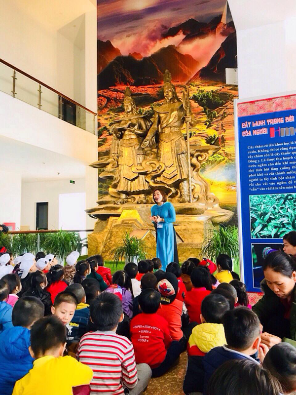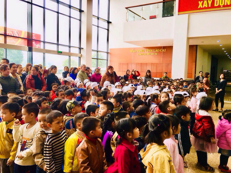 Điểm đến đầu tiên của các bé là Bảo Tàng Tỉnh Lào Cai, đến với bảo tàng các bé rất phấn khởi, vui vẻ và hào hứng khi được nghe các cô, chú hướng dẫn viên của bảo tàng trao đổi các thông tin về bảo tàng cho các bé một cách hấp dẫn, dễ hiểu và đặc biệt hơn là các bé còn được trực tiếp ngắm nhìn, tiếp cận các hiện vật cổ, tranh ảnh danh thắng trên địa bàn tỉnh Lào Cai rất phong phú. Trong đó có: 18 di tích cấp Quốc gia, 12 di tích cấp tỉnh. Hầu hết các di tích, danh thắng đều được bảo tồn, phát huy giá trị về mặt giáo dục lịch sử văn hóa rất cao. Đó là thế mạnh mang tính đặc trưng, được ví như là trường học thích hợp đối với mọi lứa tuổi, tầng lớp xã hội và nghề nghiệp. Do đó đã khuyến khích các bé và du khách thăm quan càng thêm yêu thích khám phá bảo tàng. Từ đó nâng cao hiệu quả trong việc giáo dục khoa học - đạo đức - thẩm mỹ góp phần tạo môi trường giáo dục toàn diện của nhà trường.