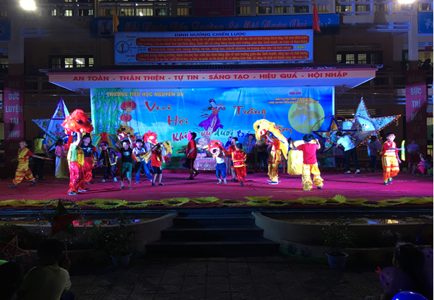 Các em được tham gia múa sư tử, rước đèn quanh sân trường, thỏa thích múa hát với nhiều tiết mục đặc sắc, đặc biệt những tiết mục khiêu vũ thể hiện niềm đam mê nghệ thuật, giới thiệu nét đẹp văn hóa về mâm ngũ quả, những chiếc bánh ngọt trung thu có hương vị quê nhà lại tỏa hương. Những chiếc đèn lồng mang hồn quê Việt Nam được làm bằng những chiếc liệu như: tre, nứa, cói được các em khéo léo làm thành các hình bông hoa, hình người nộm,…đã đạt giải cao nhất, giải chuyên đề sáng tạo trong cuộc thi làm đèn lồng do khách sạn Aristo tổ chức cũng được giới thiệu và trưng bày, màn ảo thuật biến hóa vô cùng ấn tượng tạo nên sự khác biệt của đêm trung thu nhưng vẫn mang đậm hồn quê Việt.