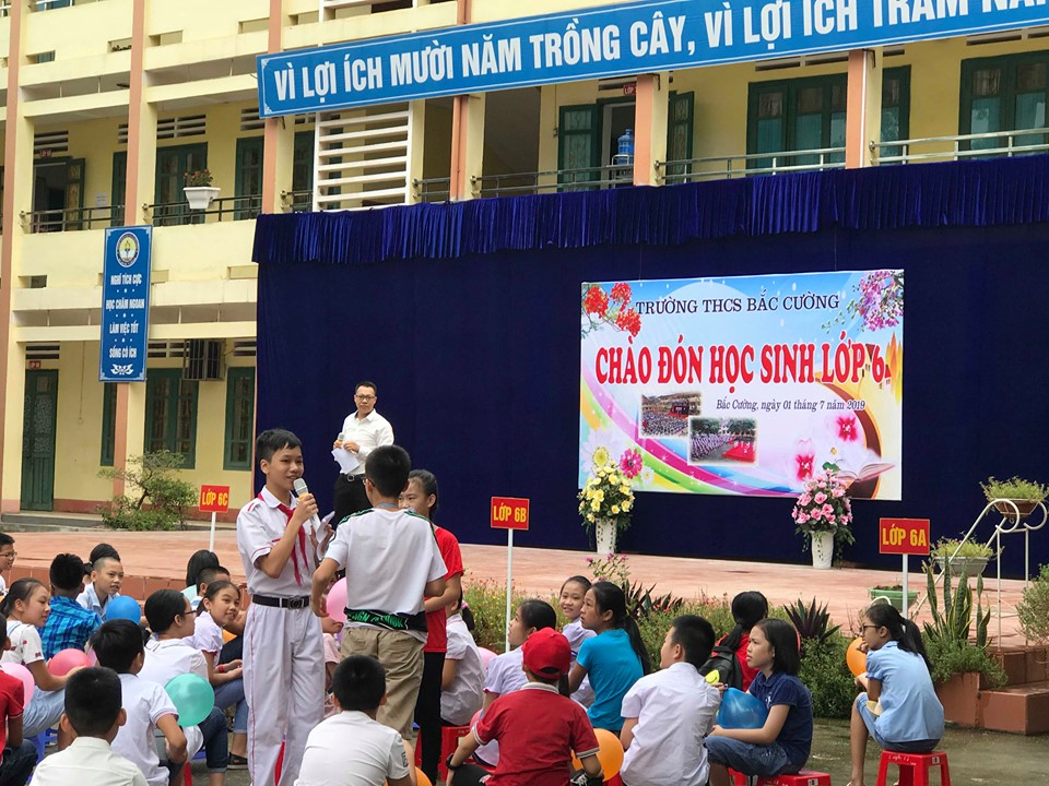 Bỡ ngỡ và háo hức, hồi hộp và lo âu - Đó là tâm trạng chung của các em học sinh lớp 6 khi lần đầu tiên bước chân qua cánh cổng trường THCS, nơi các em sẽ gắn bó 4 năm học tới đây. Để xóa tan khoảng cách và tạo sự gần gũi, thân thiện, tự tin cho các em học sinh, sáng ngày 01/7/2019 trường THCS Bắc Cường đã tổ chức hoạt động “Chào đón học sinh lớp 6”.
