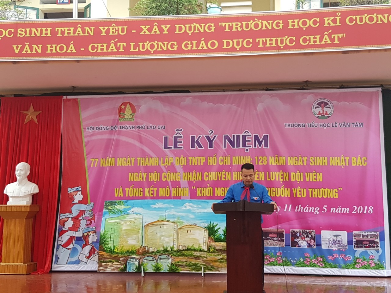 Cùng với việc giảng dạy những kiến thức văn hóa trong sách vở, trong đời sống thực tế hàng ngày, trường tiểu học Lê Văn Tám, thành phố Lào Cai luôn quan tâm tới việc tổ chức các hoạt động trải nghiệm sáng tạo và hoạt động của Đội TNTP Hồ Chí Minh để học sinh được học kiến thức và rèn các kĩ năng qua thực hành, trải nghiệm. Thông qua các hoạt động giúp cho các em hình thành khả năng tư duy, óc sáng tạo. Giờ học không phải chỉ là những lý thuyết nhàm chán; học sinh hứng thú, yêu lao động hơn; biết tiết kiệm và trân trọng những sản phẩm đang được thưởng thức, sử dụng hàng ngày.Sáng ngày 11/5/2018 Hội đồng Đội thành phố Lào Cai phối hợp với Trường TH Lê Văn Tám tổ chức chuỗi các hoạt động: Kỷ niệm 77 năm ngày thành lập Đội TNTP Hồ Chí Minh; 128 năm ngày sinh nhật Bác; Ngày hội công nhận chuyên hiệu - RLĐV và tổng kết mô hình “Khởi nghiệp - Khơi nguồn yêu thương”.