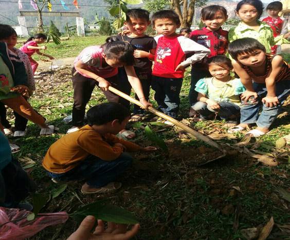 Hòa chung với không khí ngày Tết trồng cây , cô và trò điểm trường Đá Đinh đã tổ chức tham gia trồng cây xanh và trồng hoa tại điểm trường vào ngày 28/2/2018.