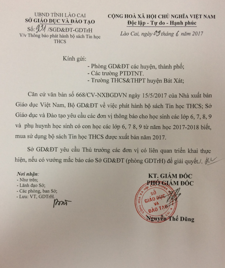 THÔNG BÁO PHÁT HÀNH SÁCH TIN HỌC THCS