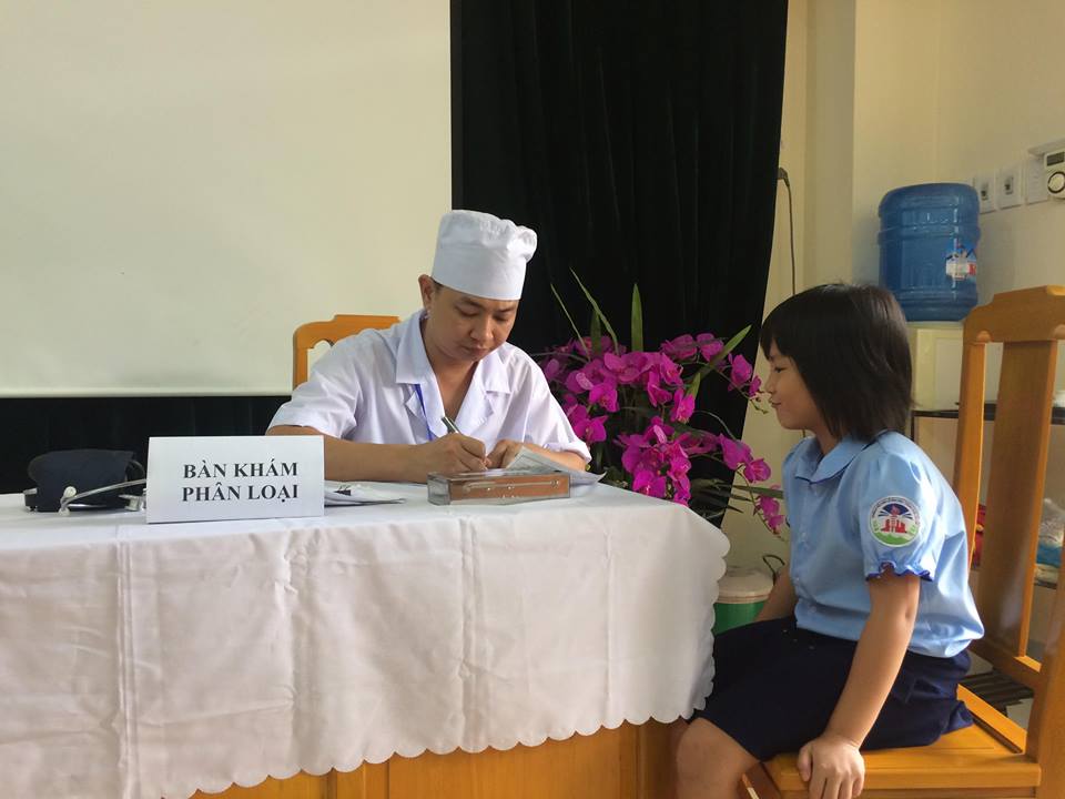 Chúng tôi đã chuẩn bị rất kĩ lượng trước khi tiêm phòng cho các cháu, từ áp phích, tờ rơi hướng dẫn các bước thực hiện tiêm chủng, lịch tiêm chủng, theo dõi, chăm sóc, xử trí phản ứng sau tiêm chủng. Các dụng cụ y tế cần thiết như nhiệt kế theo dõi nhiệt độ bảo quản vắc xin, nhiệt kế đo thân nhiệt, ống nghe, hộp chống sốc, bơm kim tiêm, bông khô, bông có cồn, cồn 70 độ, panh, khay, cưa lọ vắc xin, khăn sạch trải bàn tiêm, hộp an toàn, thùng đựng rác, túi hoặc hộp đựng vỏ lọ vắc xin, giấy bút, bàn, ghế, biển chỉ dẫn, xà phòng, nước rửa tay...” Cô Ngô Thị Thanh Nga - Hiệu trưởng nhà trường cho biết: “