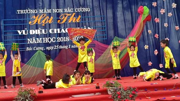 Năm học 2018 – 2019 trường mầm non Bắc Cường với mô hình chỉ đạo điểm nhảy erobic, khiêu vũ, dân vũ…nhà trường đã vận dụng gắn với các nội dung vui xuân, đón tết vào hội thi “