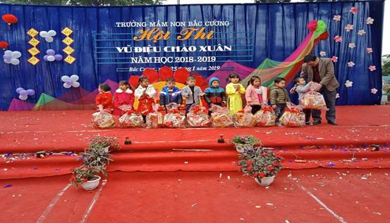 Trong hội thi, ban đại diện cha mẹ học sinh và cơ quan, đơn vị trên địa bàn cũng đã quan tâm đến các bạn nhỏ có hoàn cảnh khó khăn và trao tặng cho mỗi em một phần quà giúp các em có một cái tết vui vẻ hơn ấm áp hơn bên gia đình yêu thương của mình.