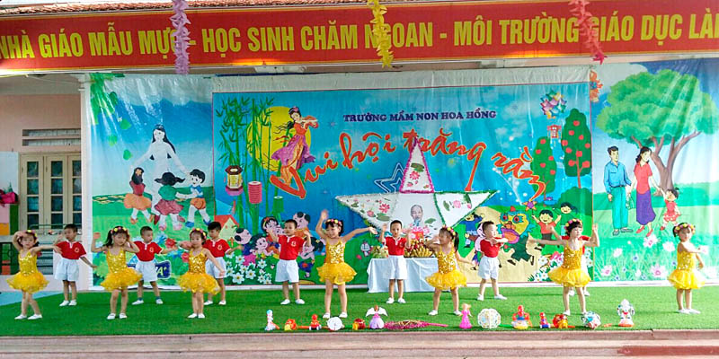 Về tham dự chương trình có đồng chí Phạm Thị Liễu, phó chủ tịch UBND phường Kim Tân, ban đại diện cha mẹ học sinh các lớp, giáo viên, nhân viên cùng hơn 300 học sinh Trường mầm non Hoa Hồng. Đúng 15h00 các cháu tiến hành màn rước đèn quanh sân trường trên nền nhạc “ Chiếc đèn ông sao”, sau đó là chương trình văn nghệ đặc sắc với những tiết mục múa, nhảy vô cùng sôi động về chủ để Tết Trung Thu và tình yêu quê hương, đất nước Việt Nam. Sự hứng thú của các bé còn được đẩy lên cao trào khi đoàn múa lân tiến vào sân khấu . Các bé đã được thưởng thức màn múa lân vô cùng tuyệt vời của các nghệ nhân. Các chú “ sư tử nhỏ” do các bé Trường mầm non Hoa Hồng cùng múa với các chú sư tử lớn tạo ra một màn múa vô cùng sôi động.